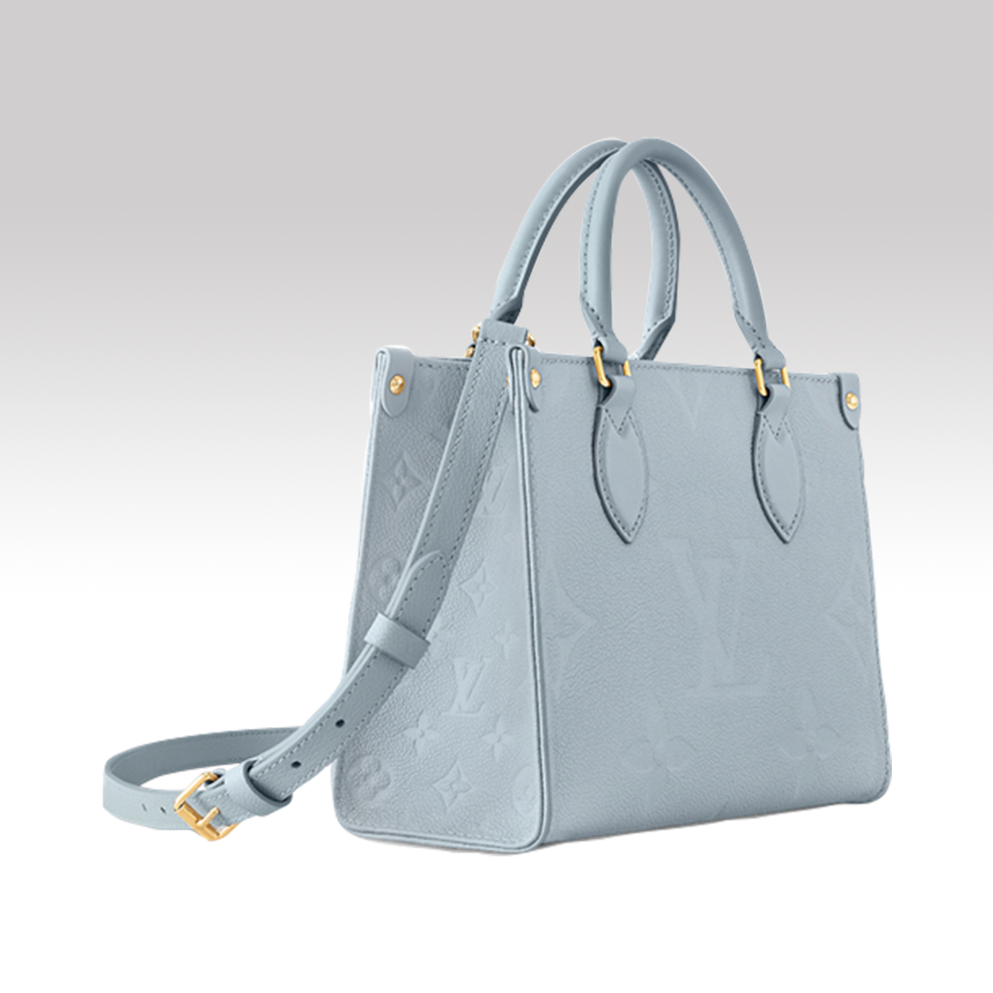 This small OnTheGo bag reworks the classic OnTheGo design in a small shape, continuing the inspired strokes of the 1968 Sac Plat bag. Monogram Empreinte embossed grain leather in an elegant new color, handles and removable and adjustable shoulder straps offer a variety of carry options. Easy to store iPad Mini.25 x 19 x 11.5 cm(Length x height x width)Embossed grain cattle leatherGrated cow leather trimMicrofiber liningMetal partLarge zipper inner sticker bagShoulder strap: removable and adjustableHalf length of tape: 48.0 cmThe half-length of the tape can be adjusted to: 52.0 cmHandle: Double handle