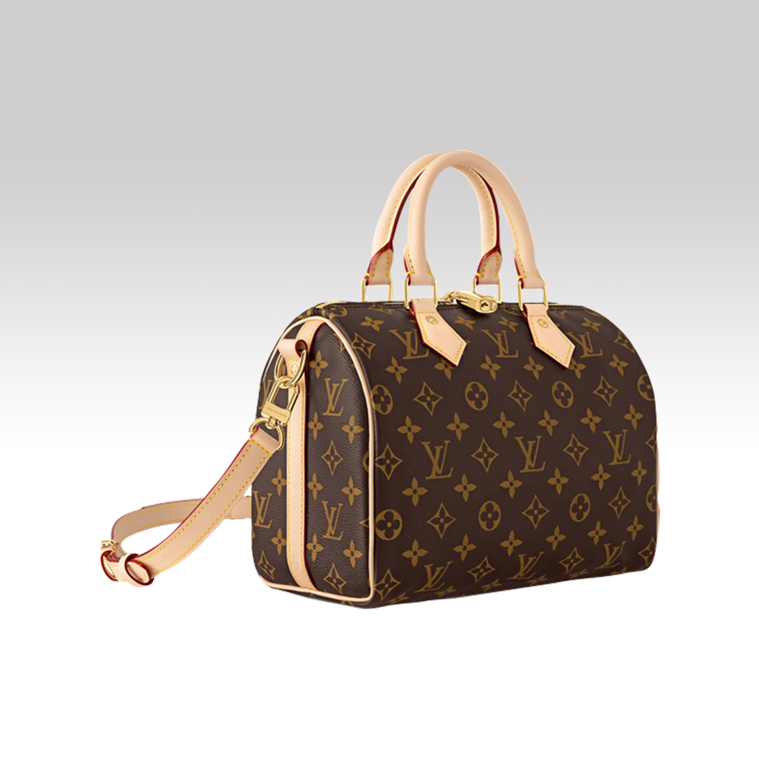 The Speedy Bandoulière 25 in signature Monogram canvas is an ideal city bag for every day. Originally created for travelers in the 1930s – the name refers to the era’s rapid transit – every feature of the Speedy’s design is iconic, from its unmistakable shape to the rolled leather handles, engraved padlock and detachable strap.