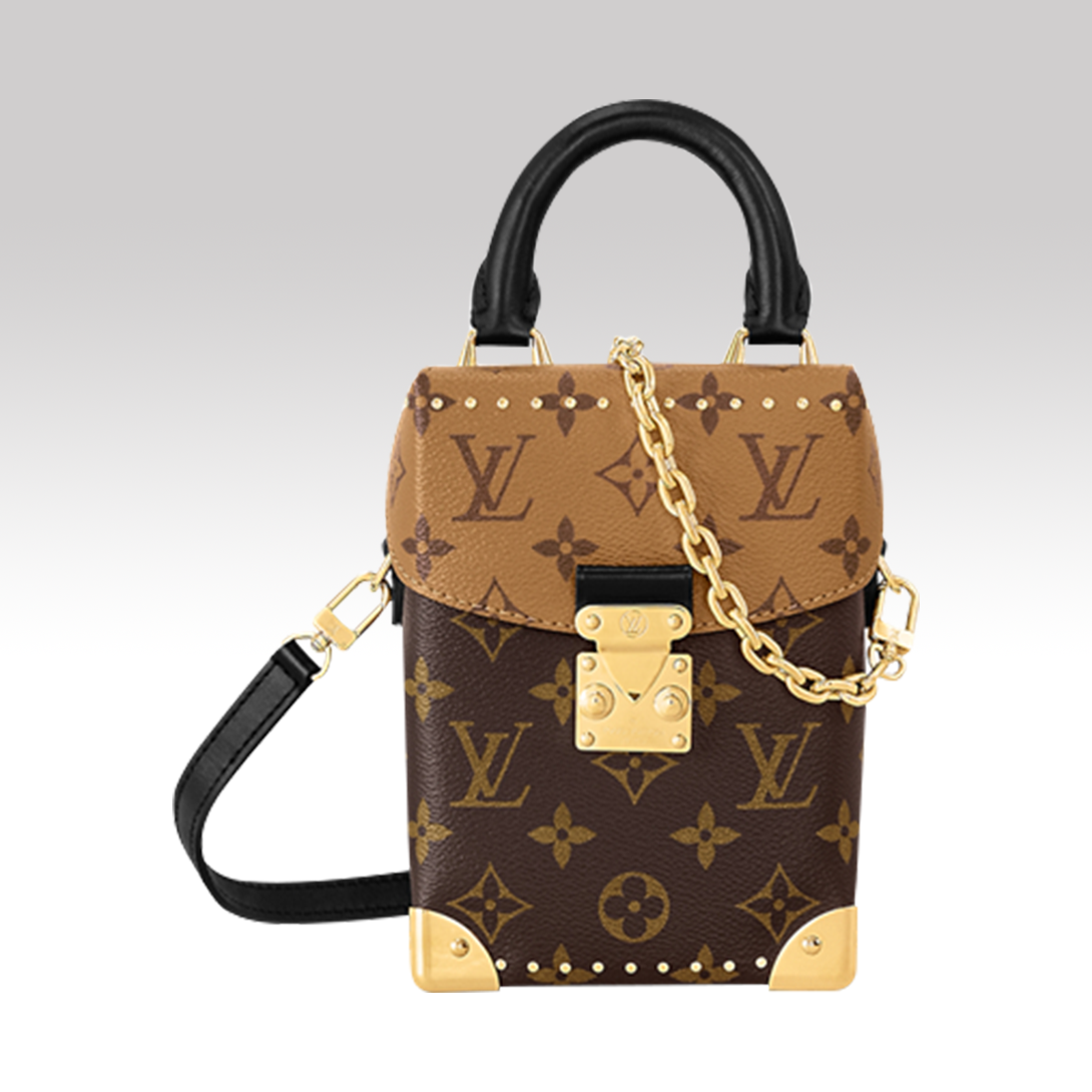The Camera Box is a modern Monogram and Monogram Reverse canvas with S-lock locks, metal corners and studs that are the signature details of Petite Malle bags. Slim chain for a soft touch, the top handle adds a comfortable carry.12.5 x 17.6 x 6 cm(Length x height x width)Monogram and Monogram Reverse coated canvasCow leather trimMicrofiber liningMetal partFlap open and close with S-lock lockBack side inside pocketShoulder strap: removable and adjustableTape half length: 49.0 cmThe half-length of the tape can be adjusted to: 57.0 cmChain: removableChain half length: 29.0 cmHandle: Single handle