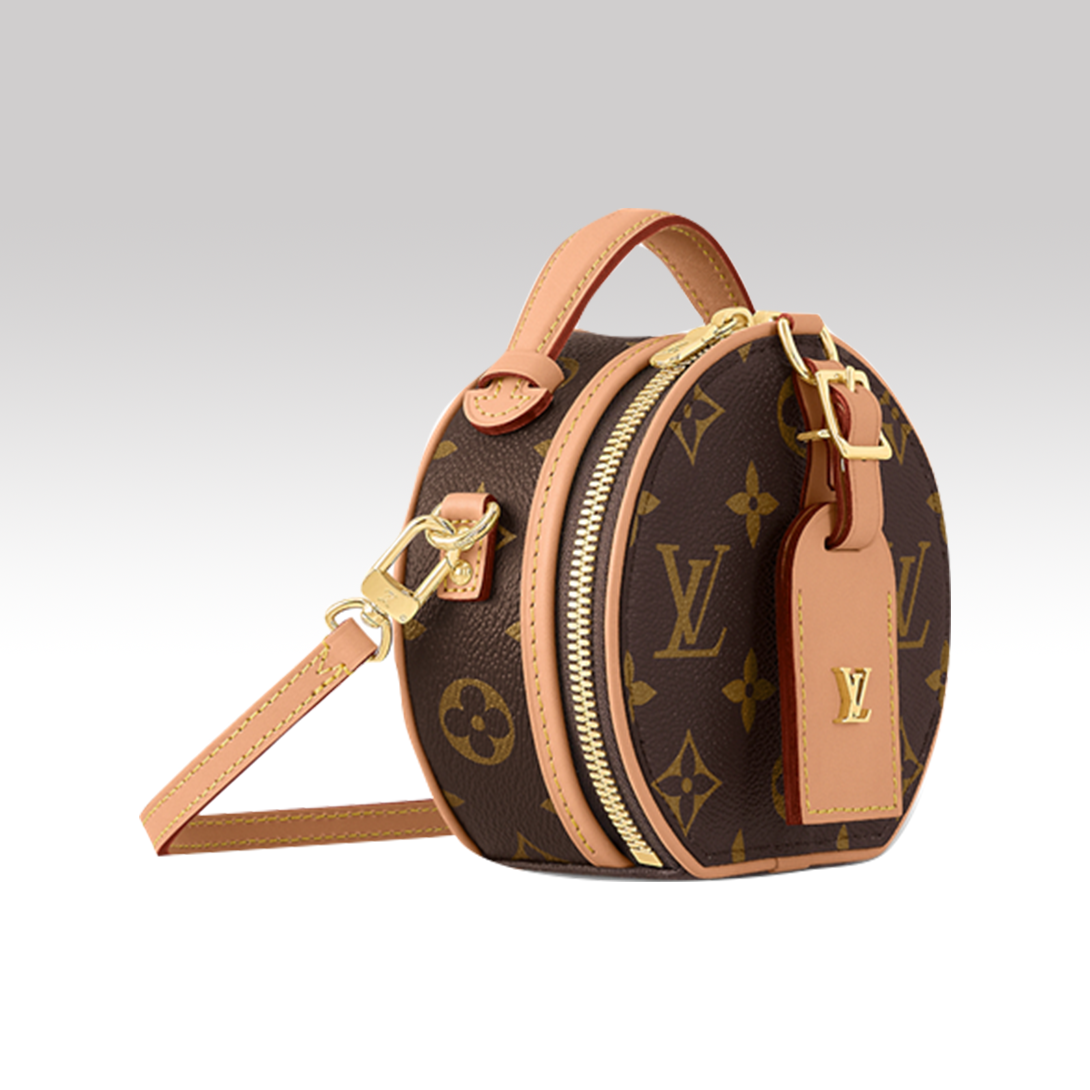 The Mini Boite Chapeau bag features a classic Monogram canvas shape, a leather nameplate and a quilted Malletage lining that highlights the brand heritage. Zipper open large organ compartment, use detachable shoulder strap, carry, shoulder or use as a Fanny pack.13 x 12 x 6.5 cm(Length x height x width)Monogram coated canvasMake old cow leather trimCow-leather liningMetal partZipper opening and closingLarge organ compartmentCentral card sandwichBelt loopFamous brandShoulder strap: removable and adjustableHalf length of tape: 48.0 cmThe half-length of the tape can be adjusted to: 55.0 cmHandle: Single handle
