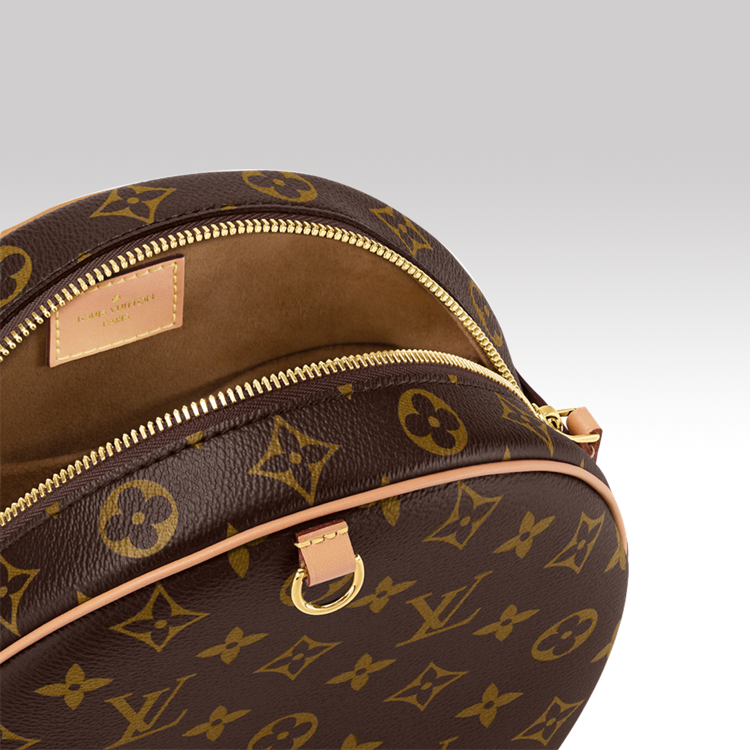 Womenswear artistic director Nicolas Ghesquiere continues Louis Vuitton's travel tradition by revisiting the classic hatbox with the Boite Chapeau Souple handbag. Soft Monogram canvas body with long leather straps for easy shoulder or crossbody choice.20 x 22.5 x 8 cm(Length x height x width)Monogram coated canvasMake old cow leather trimMicrofiber liningBrushed metal piecesLeather luggage tagSide strapZipper opening and closingBack outside pocketInside back pocket for cardsShoulder strap: Non-removable, adjustableHalf length of tape: 21.0 cmHalf length of the tape can be adjusted to: 48.0 cm